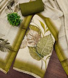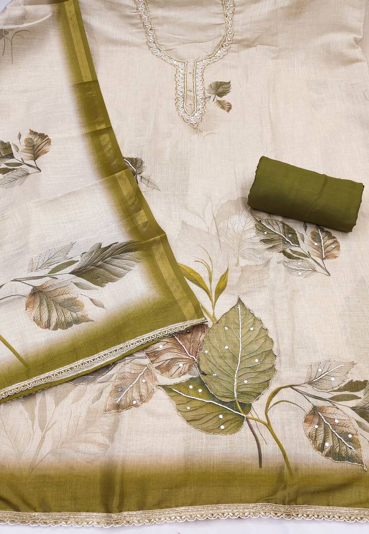 Product Name Beige Cotton Linen Printed Unstitched Dress Material
