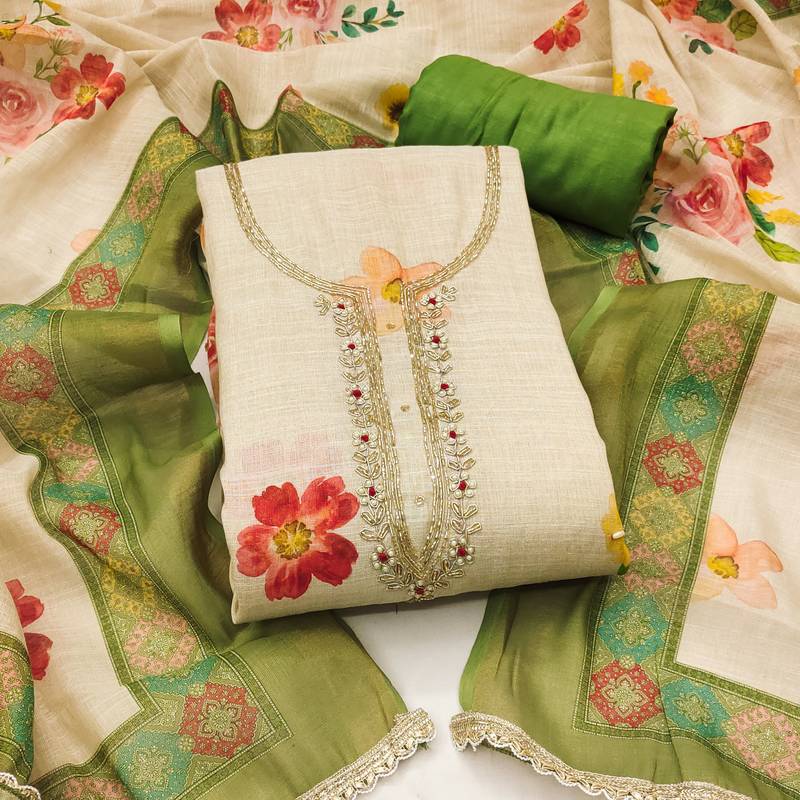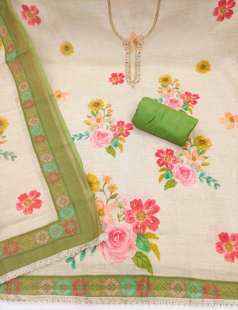 | Product Name | Beige Linen Cotton Printed Unstitched Dress Material | |