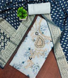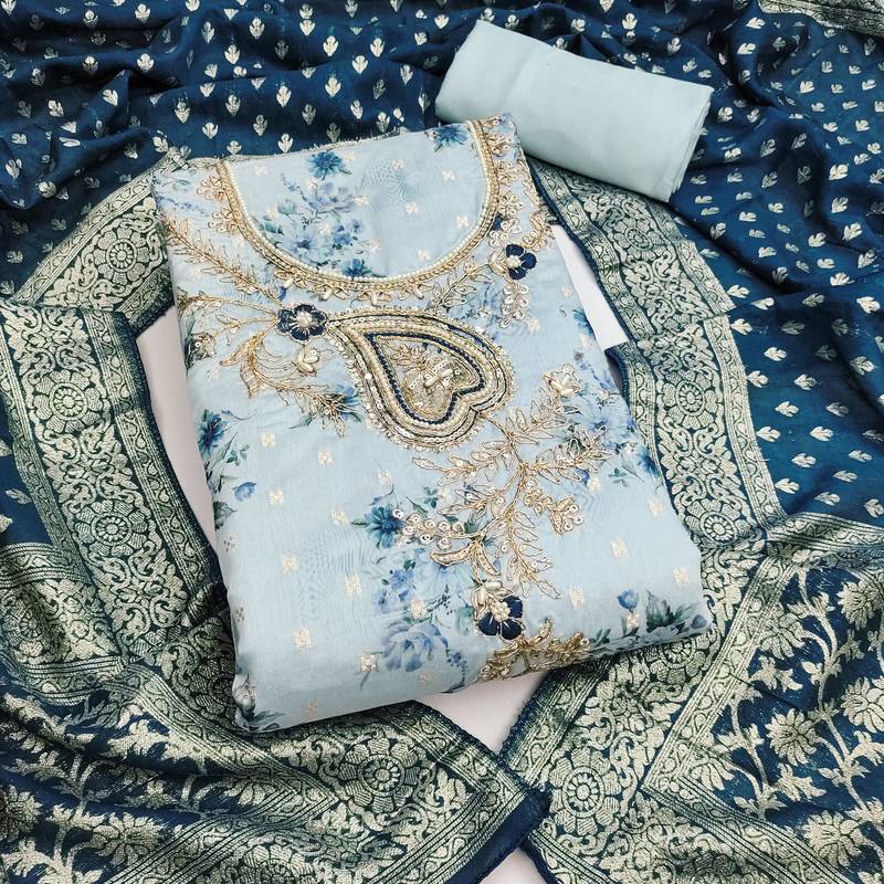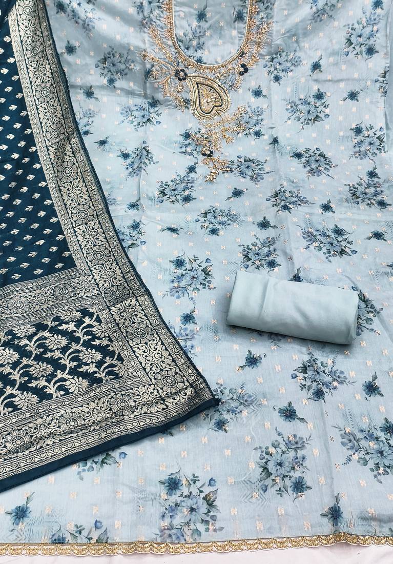 Product Name Blue Banarasi Modal Printed Unstitched Dress Material