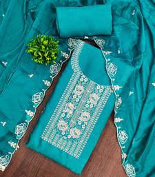 Blue viscose embroidered unstitched dress material