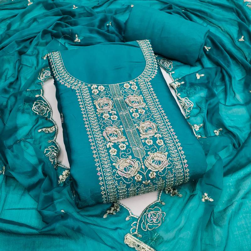 | Product Name | Blue Viscose Embroidered Unstitched Dress Material | |