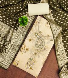 Cream banarasi modal printed unstitched dress material