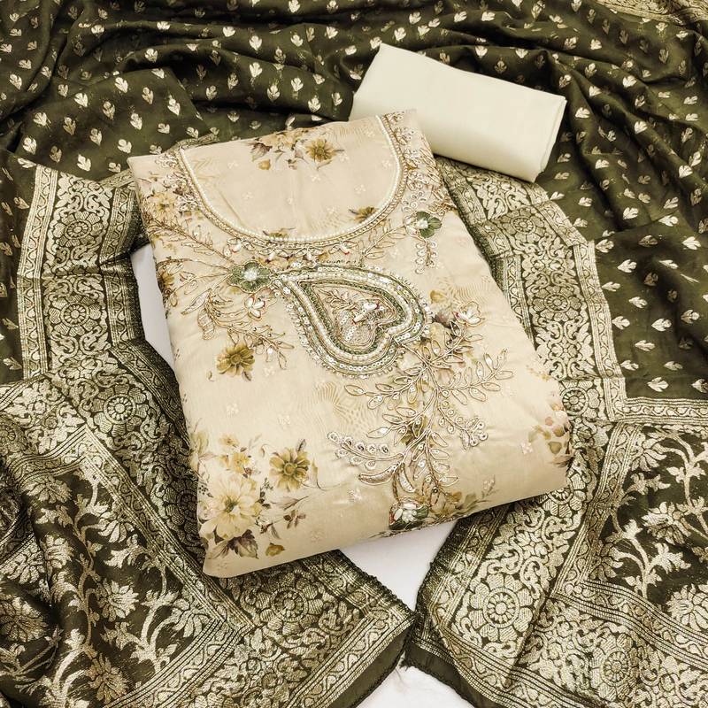 | Product Name | Cream Banarasi Modal Printed Unstitched Dress Material | |