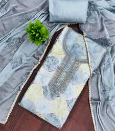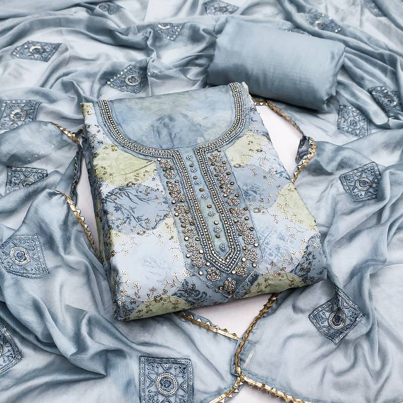 Grey organza embellished unstitched dress material