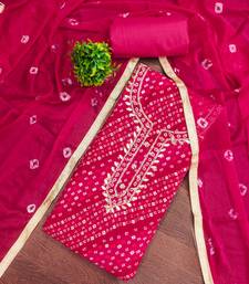 Magenta cotton bandhni unstitched dress material