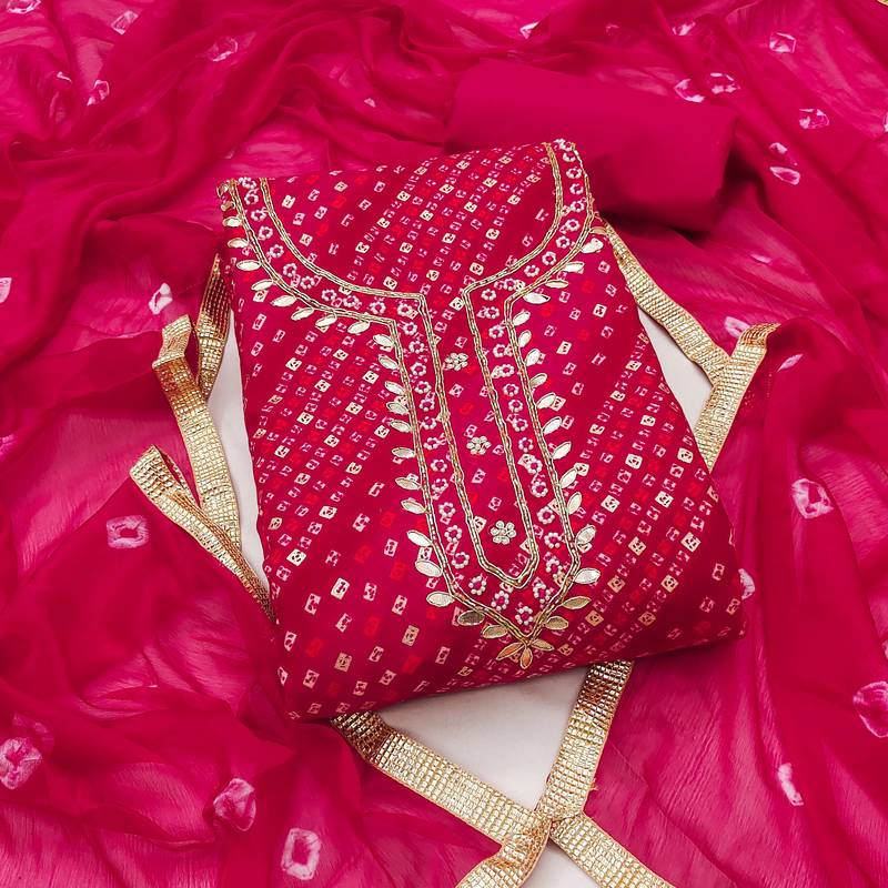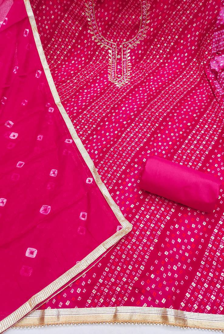 | Product Name | Magenta Cotton Bandhni Unstitched Dress Material | |