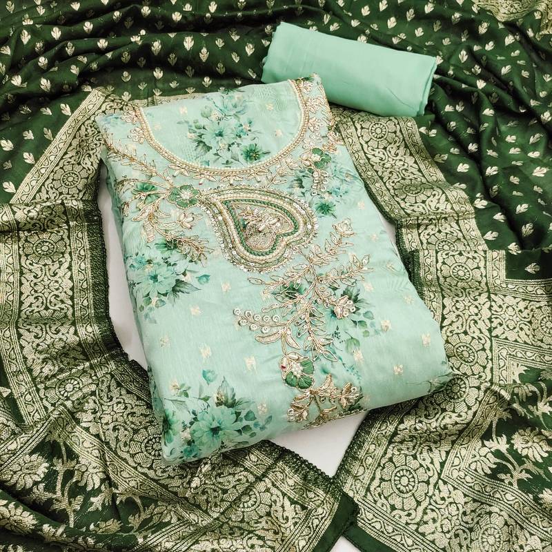 | Product Name | Mint Banarasi Modal Printed Unstitched Dress Material | |