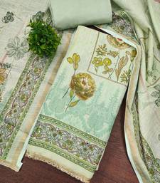 Mint cotton linen printed unstitched dress material