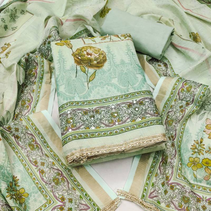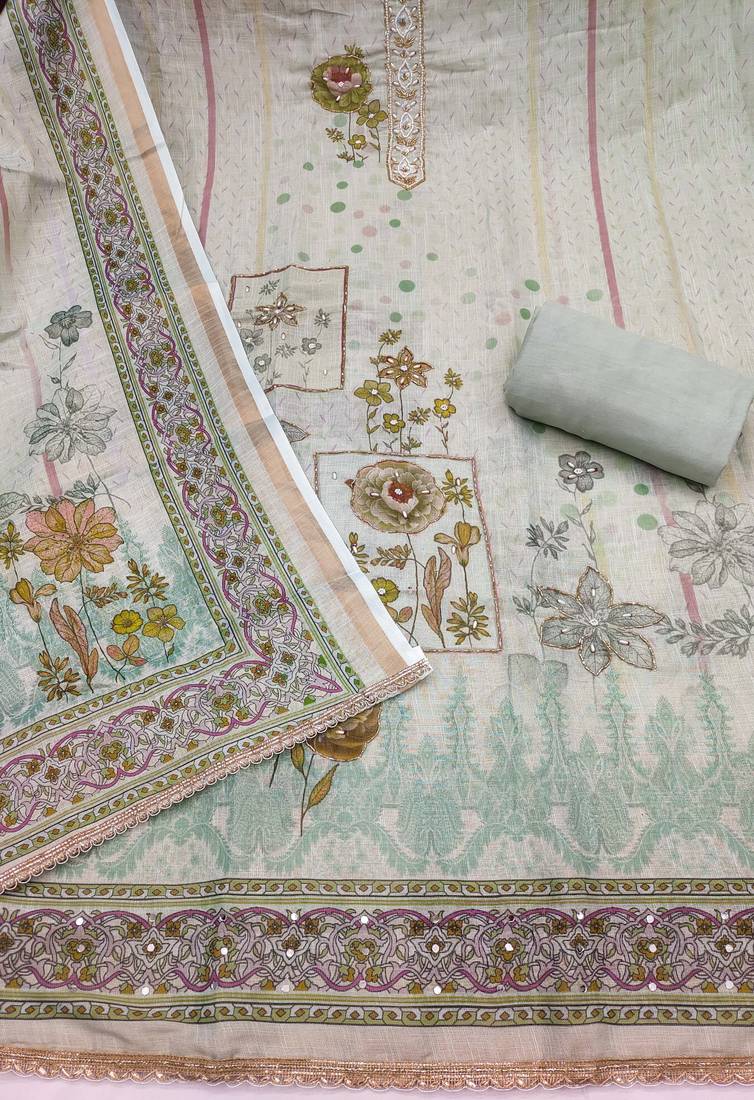 | Product Name | Mint Cotton Linen Printed Unstitched Dress Material | |
