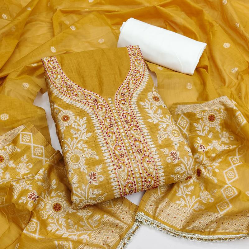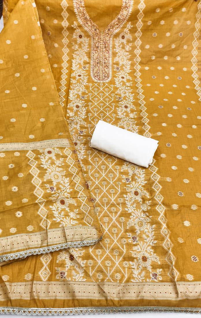 | • | Dupatta | : | Color- Mustard / Fabric- Cotton Silk |