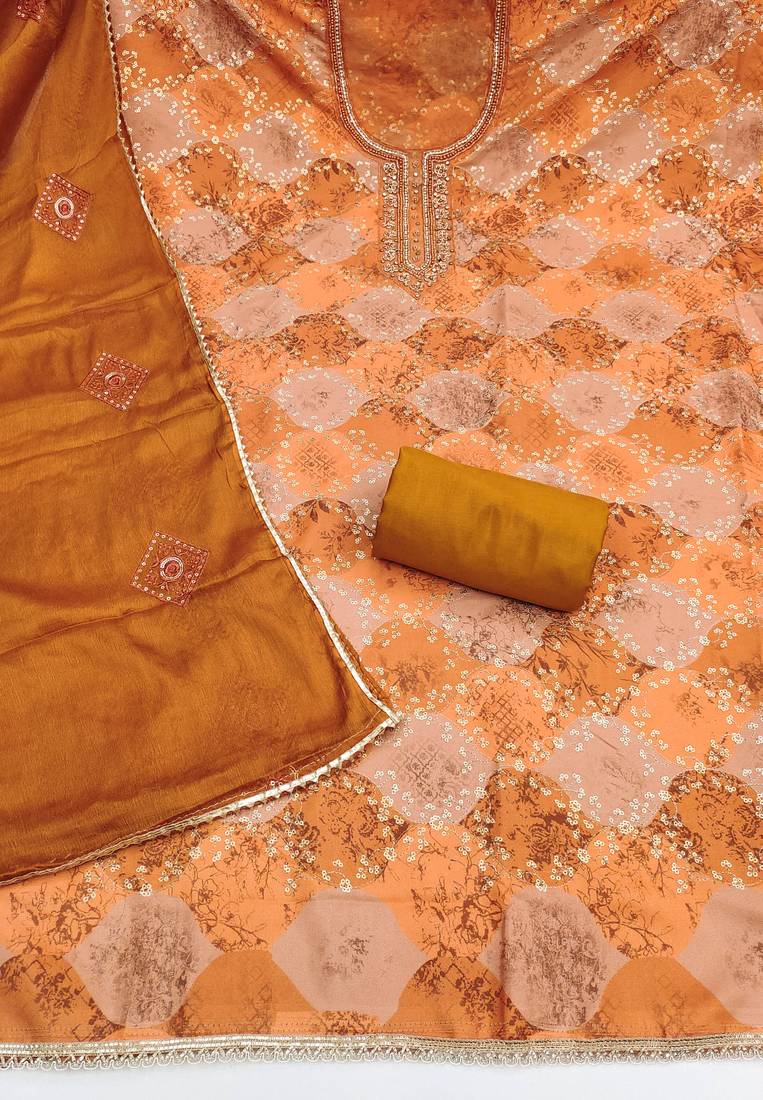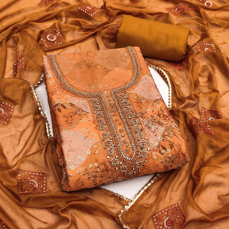 | Product Name | Orange Organza Embellished Unstitched Dress Material | |