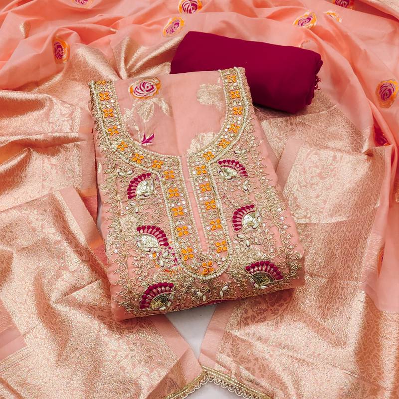 | Product Name | Peach Banarasi Cotton Woven Unstitched Dress Material | |