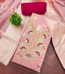 Pink banarasi cotton woven unstitched dress material
