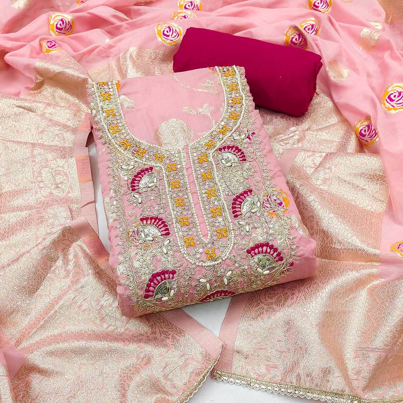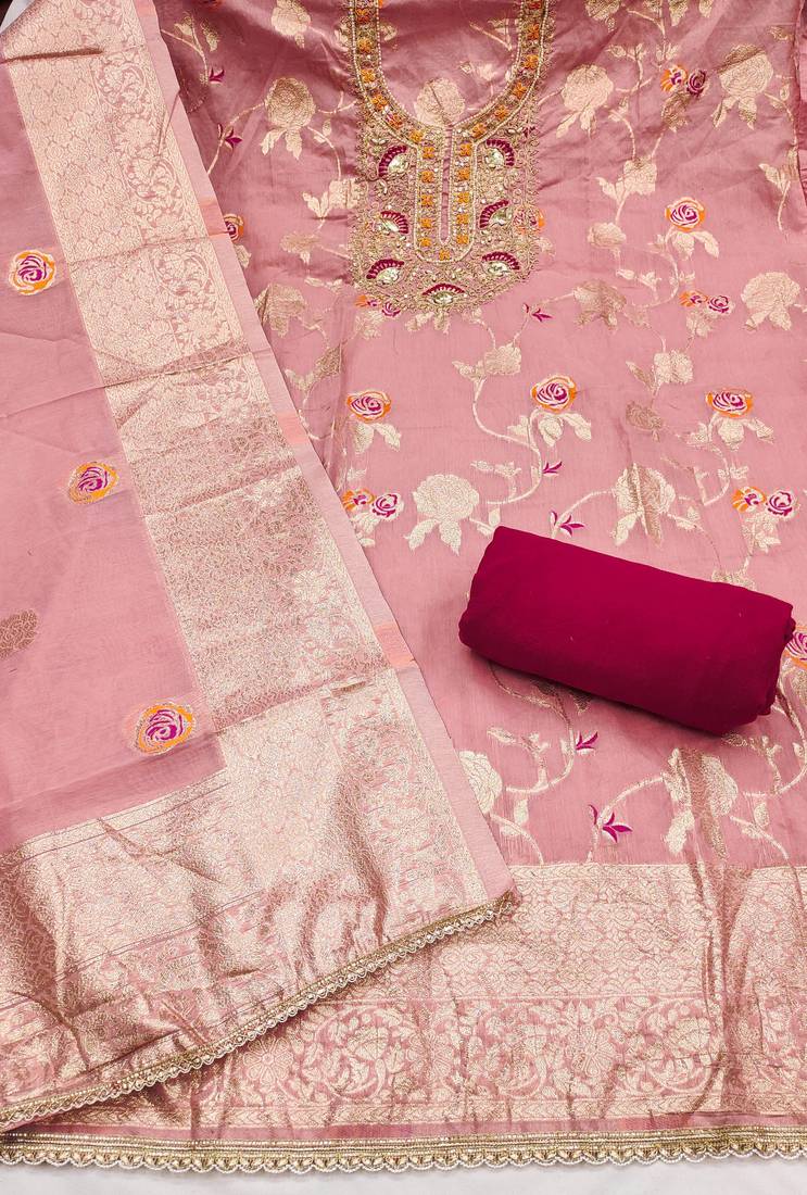 | Product Name | Pink Banarasi Cotton Woven Unstitched Dress Material | |