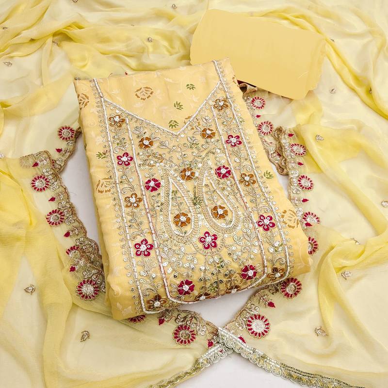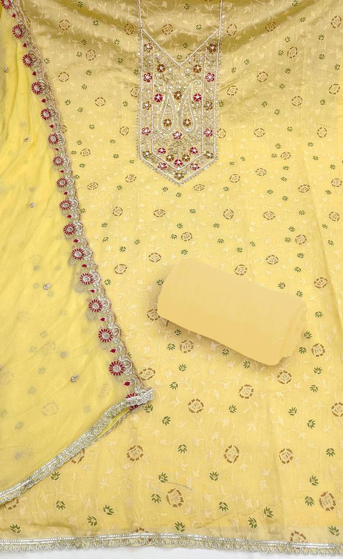 | Product Name | Yellow Modal Embroidered Unstitched Dress Material | |