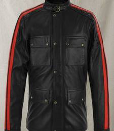 | Product Name | Black 4 Pockets Stylish Pure Lambskin Black Red Strip Leather Jacket Motorcycle Jacket | |