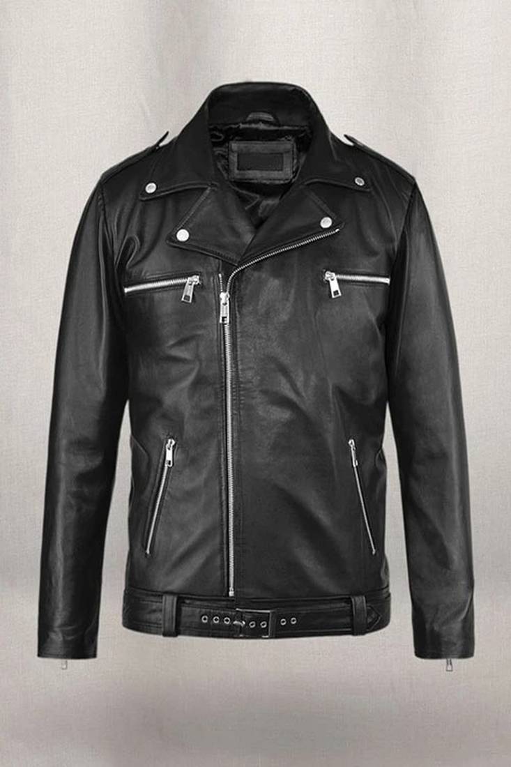Classic vintage black stylish pure lambskin leather jacket jefry morgan walking dead look