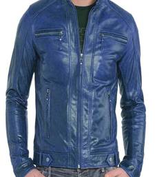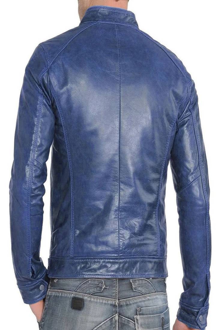 | Product Name | Men's Cuff Racer Blue Leather Straight Zip Pockets Lambskin Jacket Slim Fit Moto Style | |