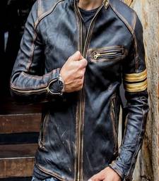 | Product Name | Mens Genuine Vintage Black Stylish Pure Lambskin Leather Biker Jacket Caramel Strip | |