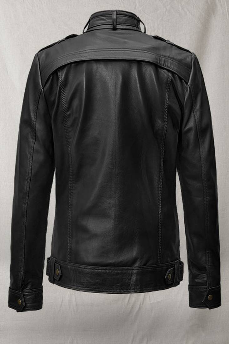| Product Name | Straight Zip Black Pockets Lambskin Jacket Slim Fit Moto Band Collar Style | |