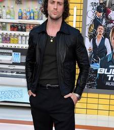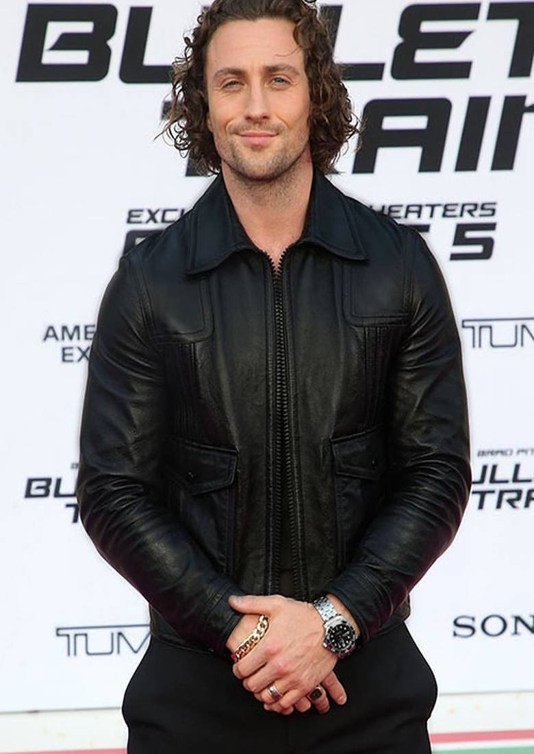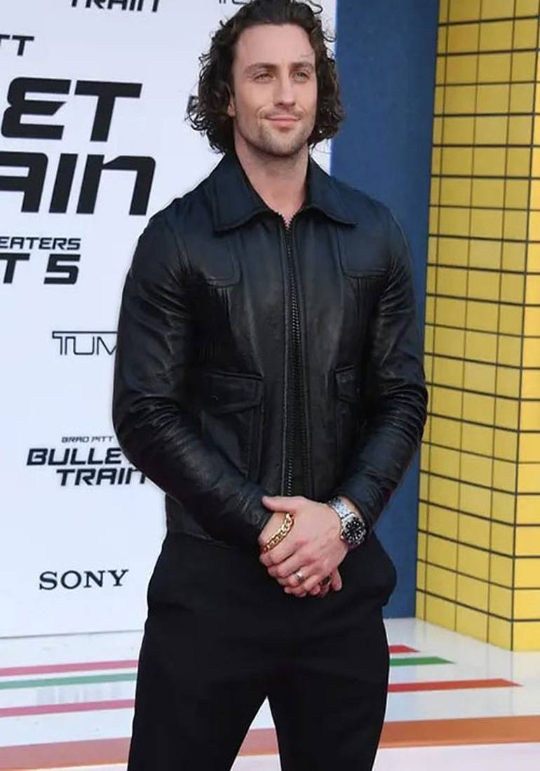 Stylish black lambskin leather biker jacket slim fit moto style aaron taylor johnson look