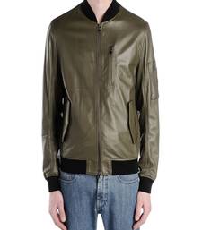 Men's olive green genuine lambskin leather jacket modern fashion outfit leather jacket-l94