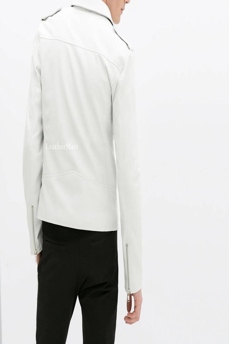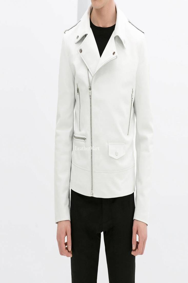 | Product Description | Men's White Genuine Lambskin Leather Motorcycle Jacket Slim Fit Designer Men Biker Jacket L193 Crafted From 100% Pure Leather