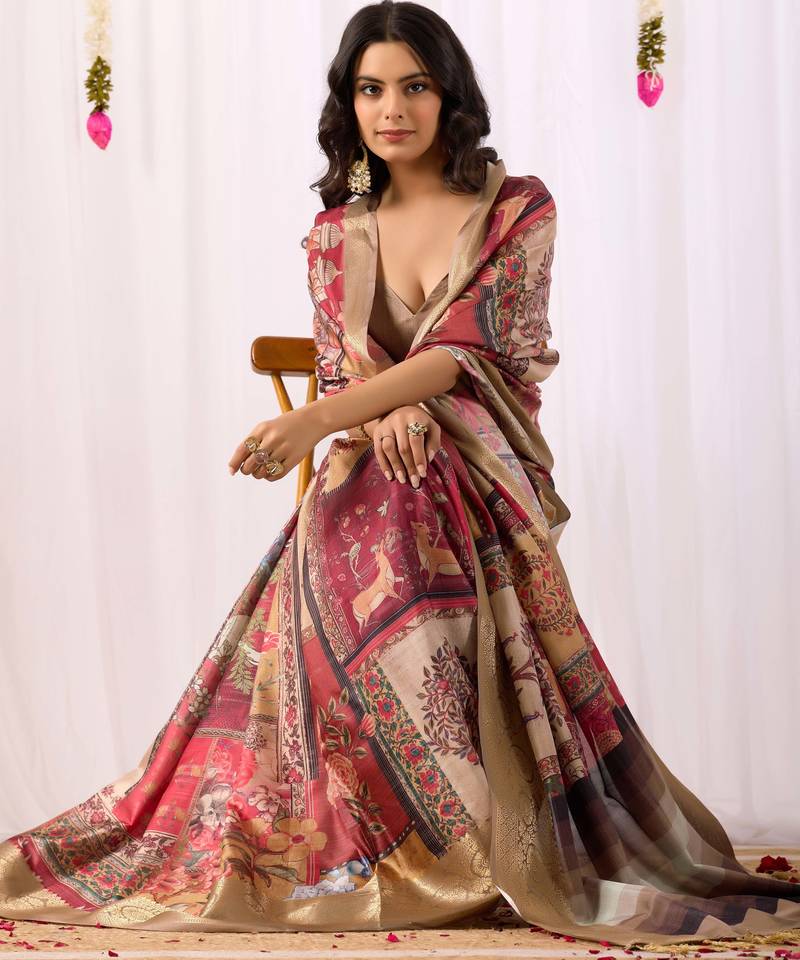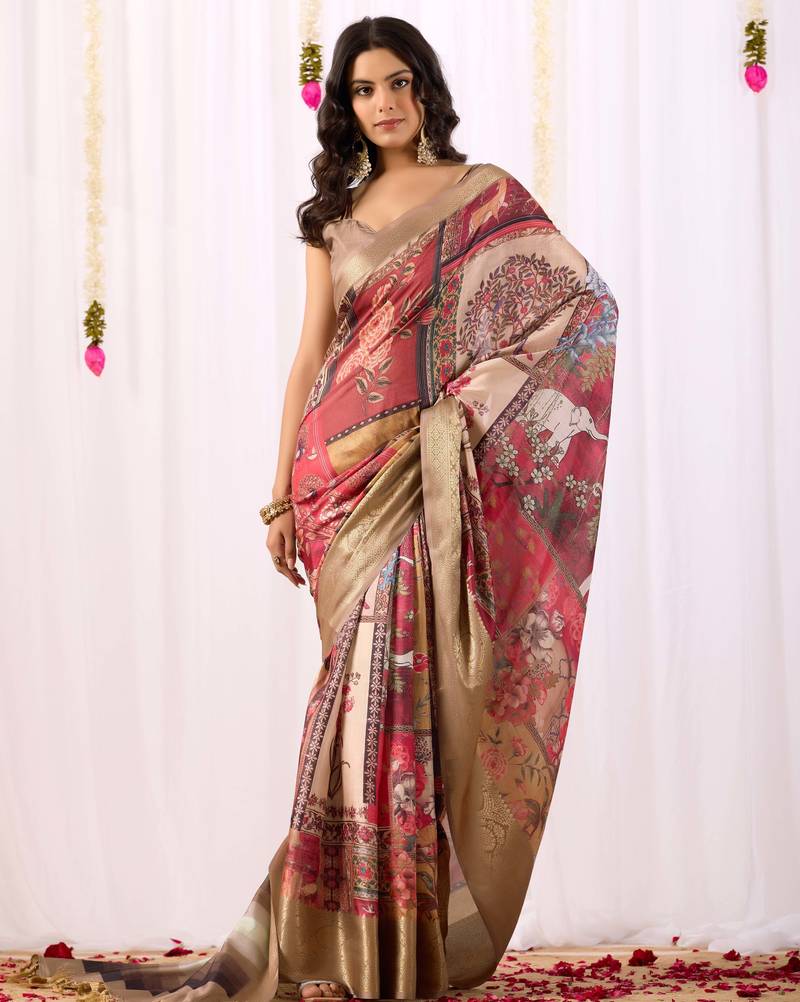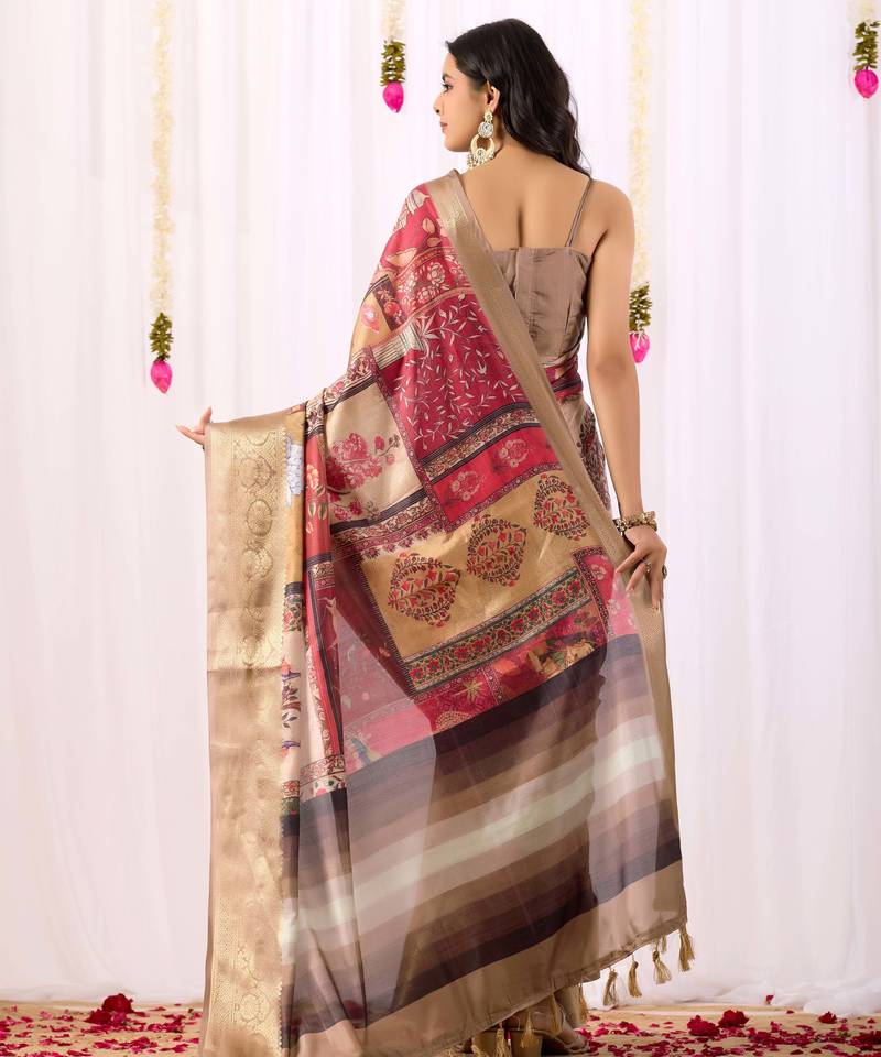 | Product Name | Beige Soft Lichi Silk Saree With Elegant Tribal Art Print & Rich Zari Border | Festive & Traditional Wear | |