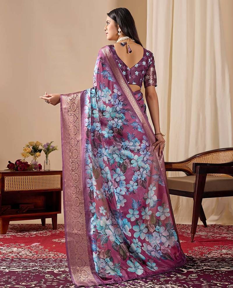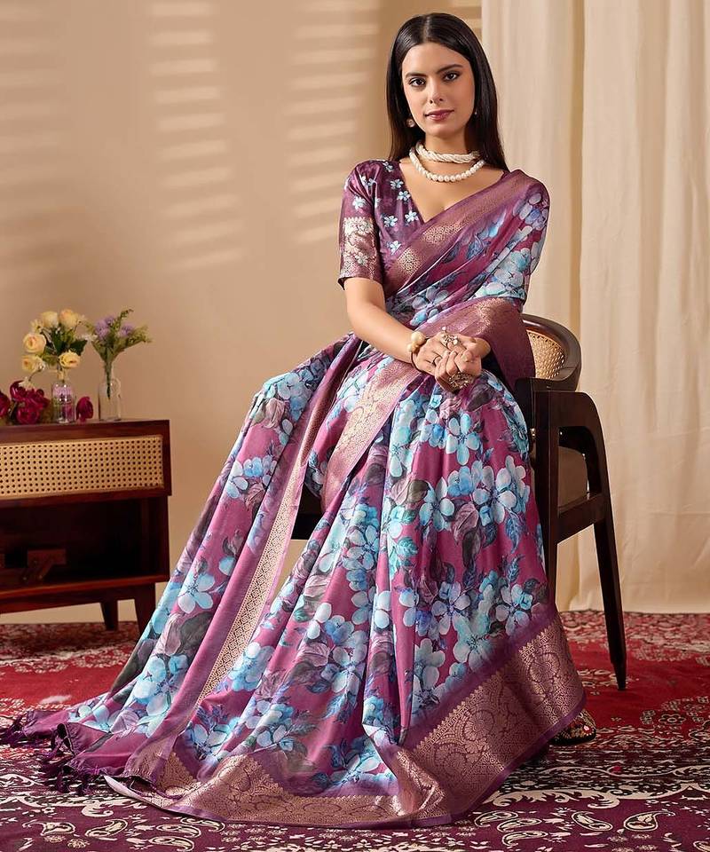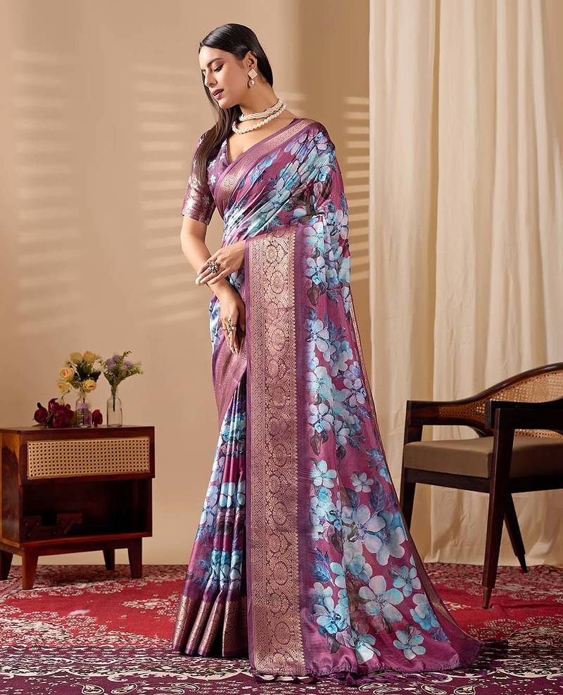 | Product Description | Soft Lichi Silk Saree Featuring Beautifully Detailed Blooming Floral Prints For A Premium Designer Look.