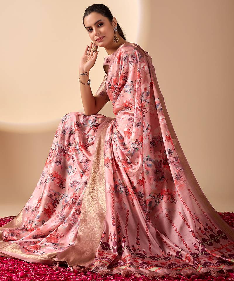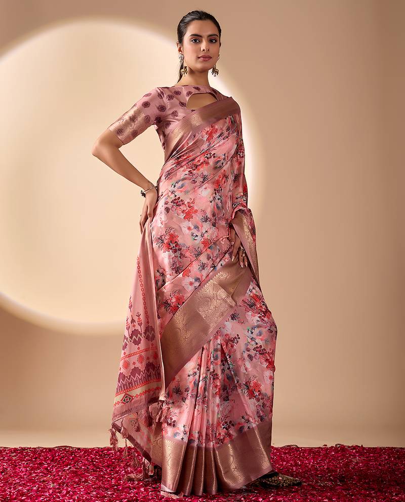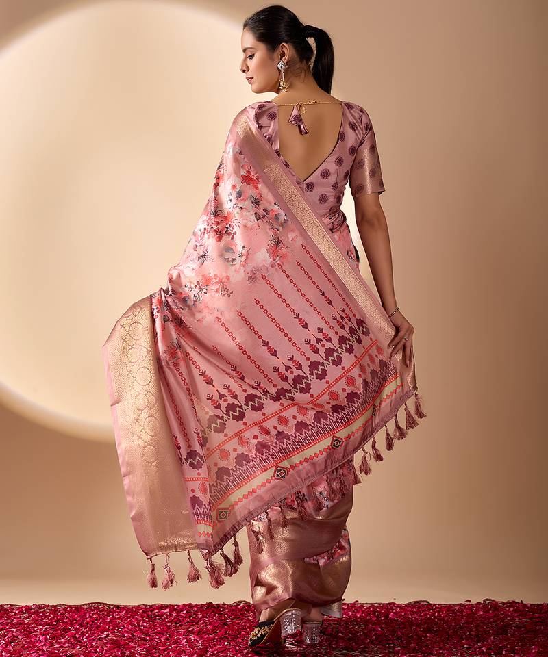 | Product Name | Mauve Pink Designer Printed Soft Lichi Silk Saree With Zari Woven Border Party Wear Saree With Blouse | |