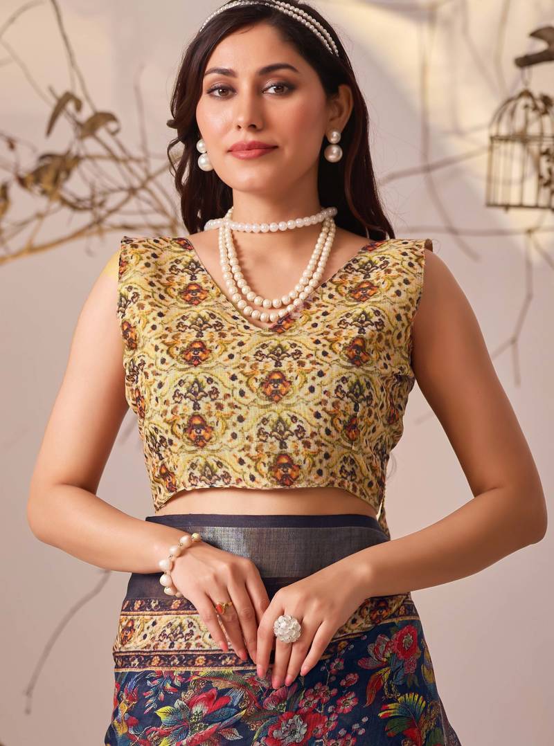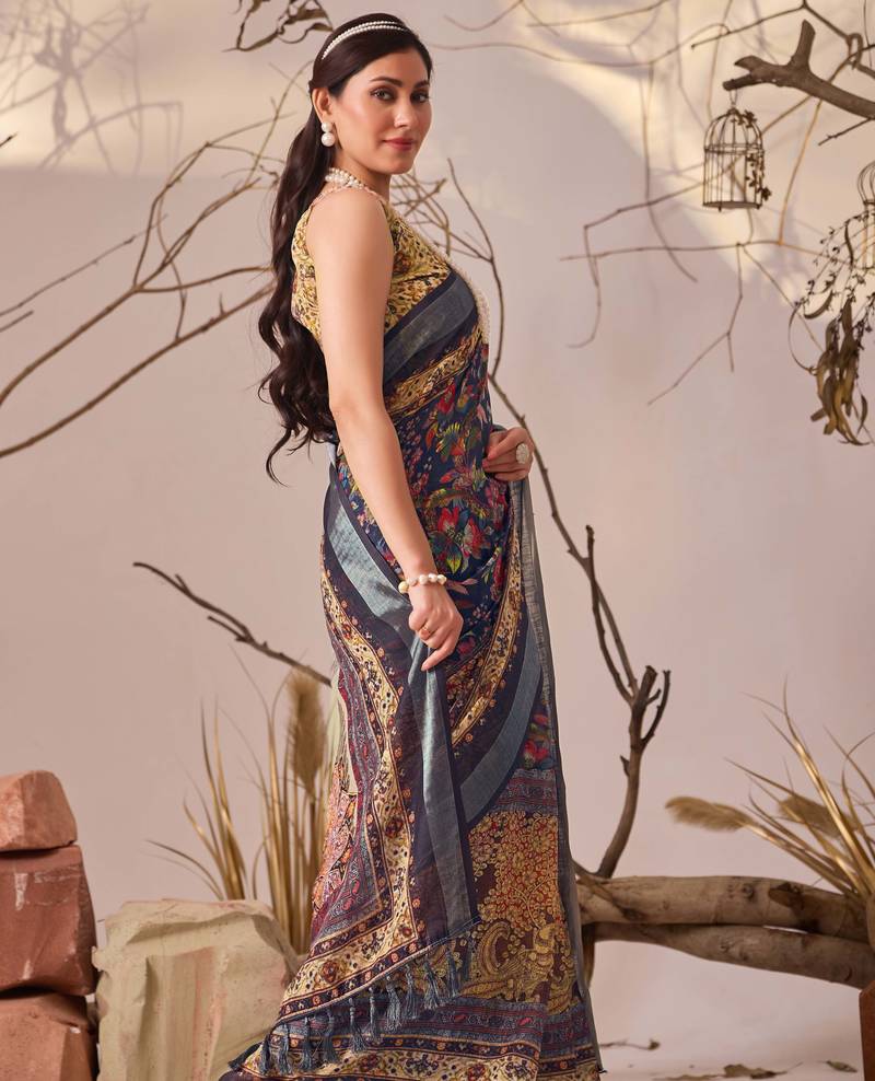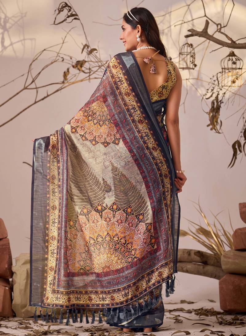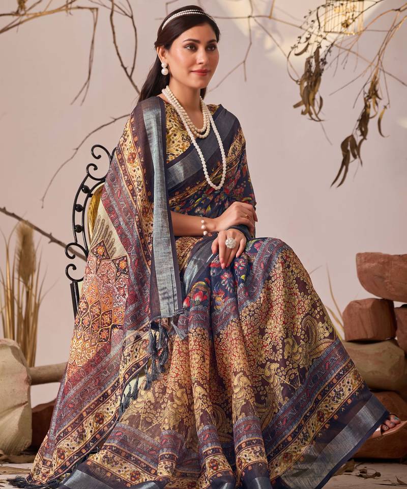 | Product Description | • Premium Linen Cotton Saree With Elegant Digital Floral & Ethnic Patterns For A Rich Designer Look