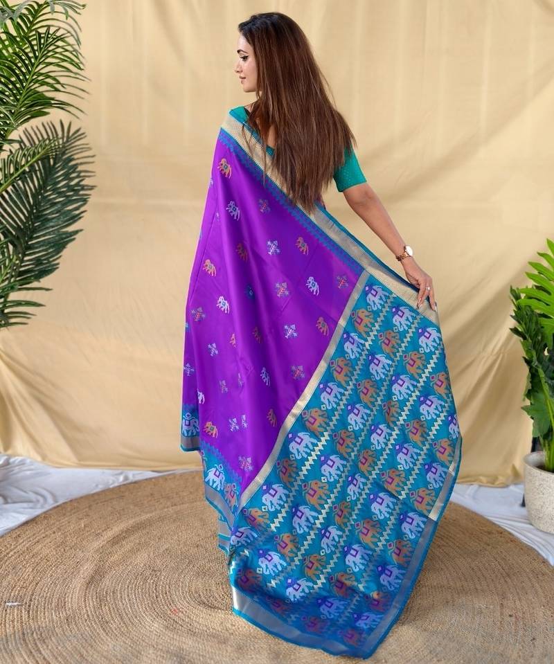 Soft silk saree delicate elephant weaved butti mottifs