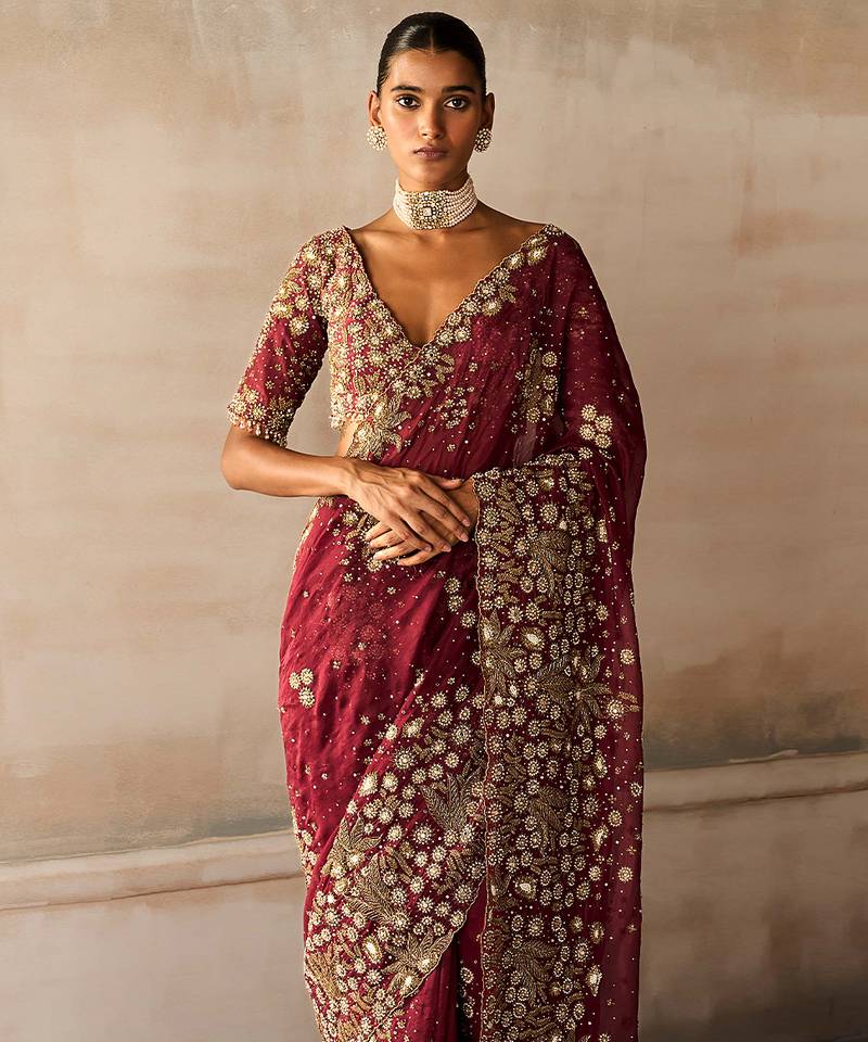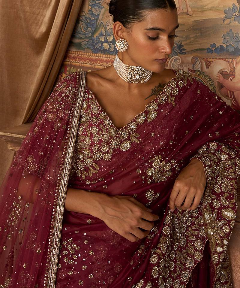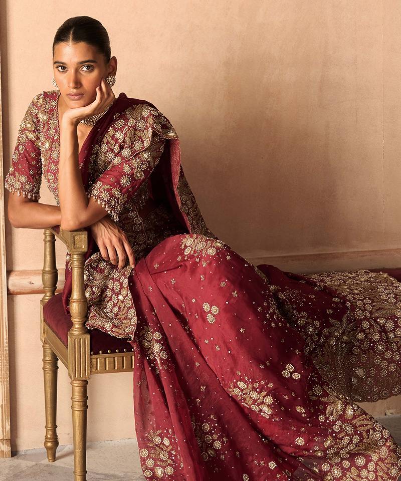 Product Name Scarlet Red Embroidered Silk Organza Saree Set