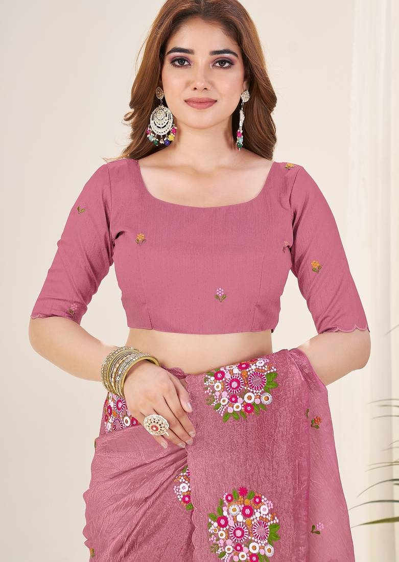 | Product Name | Pink Embroidered Blouse With Embroidered Saree | |