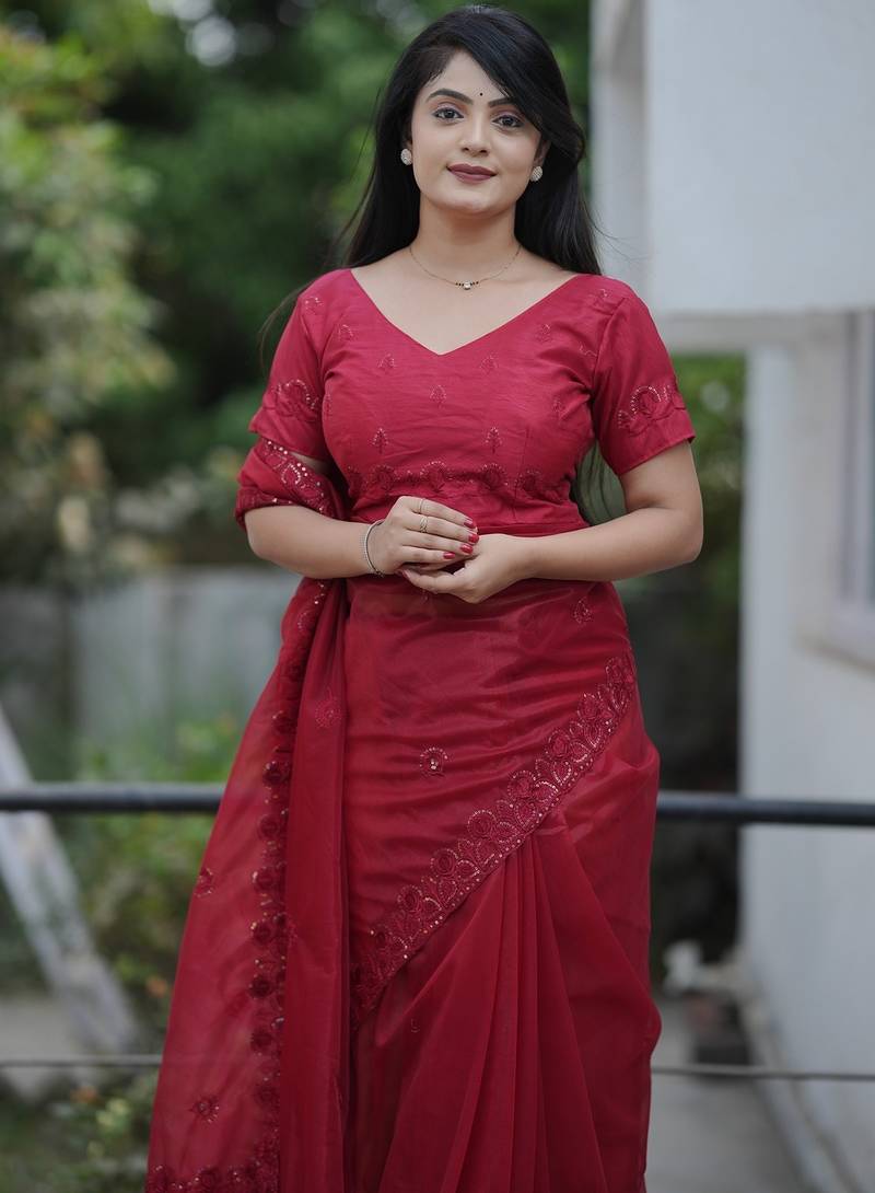 | Product Name | Red Embroidered Blouse With Embroidered Saree | |
