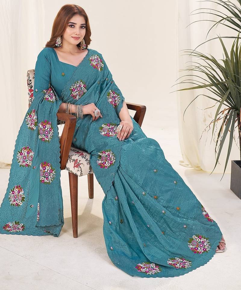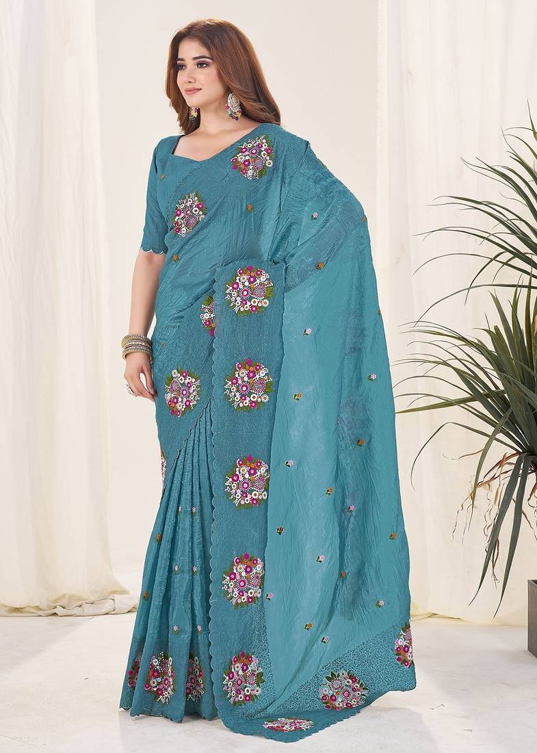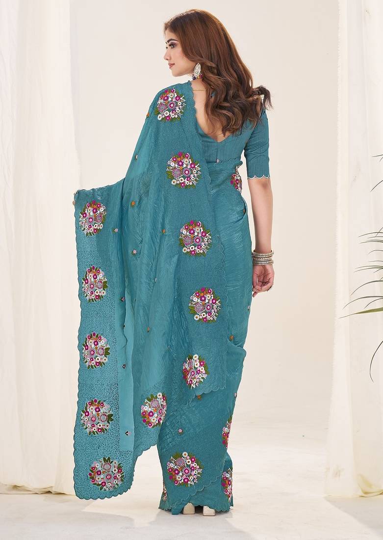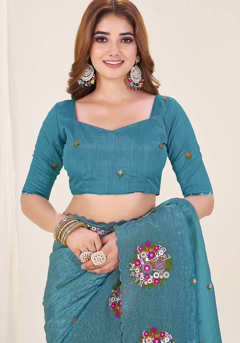 | Product Name | Teal Embroidered Blouse With Embroidered Saree | |