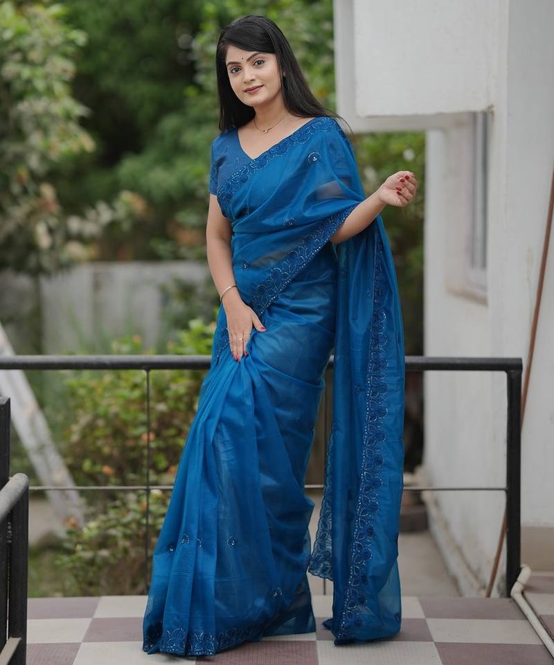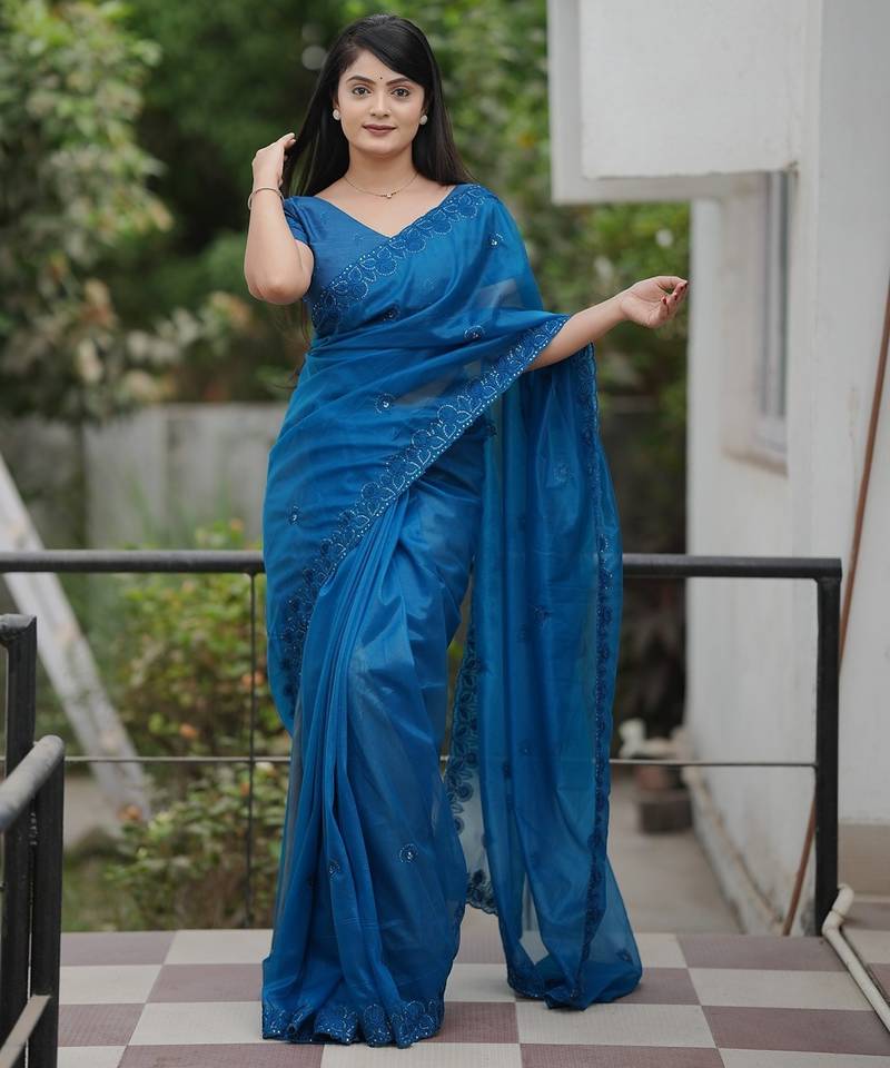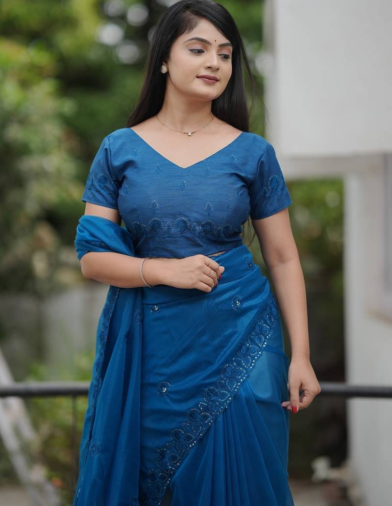| Product Name | Teal Embroidered Blouse With Embroidered Saree | |