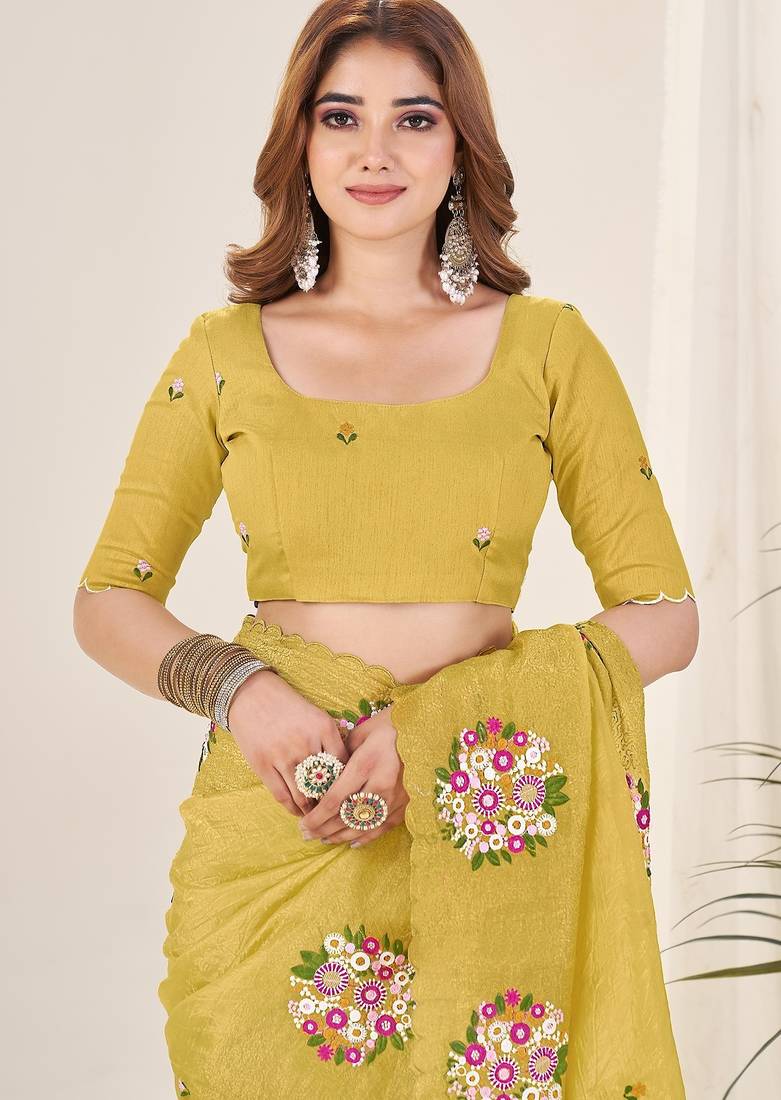 | Product Name | Yellow Embroidered Blouse With Embroidered Saree | |