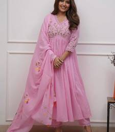 Pink rayon embroidered anarkali suit with pant & dupatta