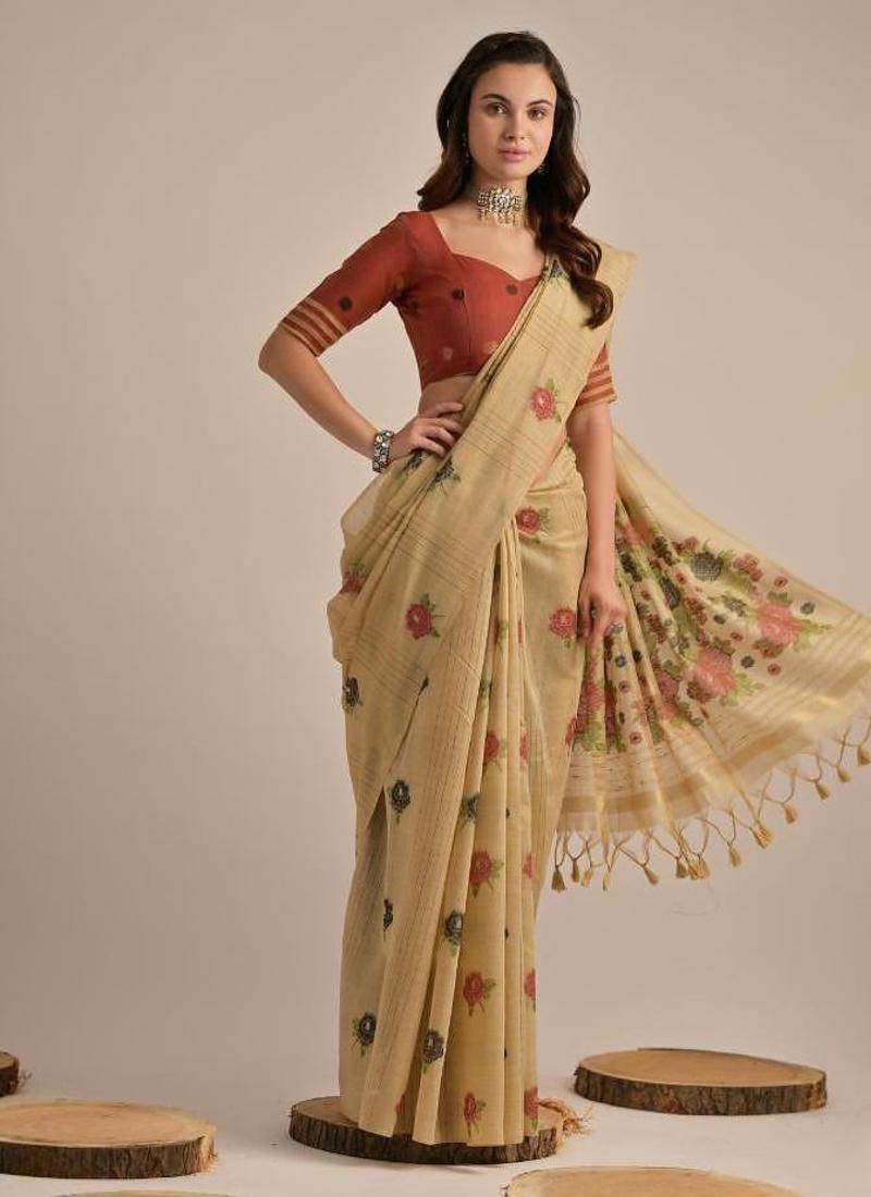 | Product Name | Beige Color Muga Cotton Flower Concept Weaving Saree | |