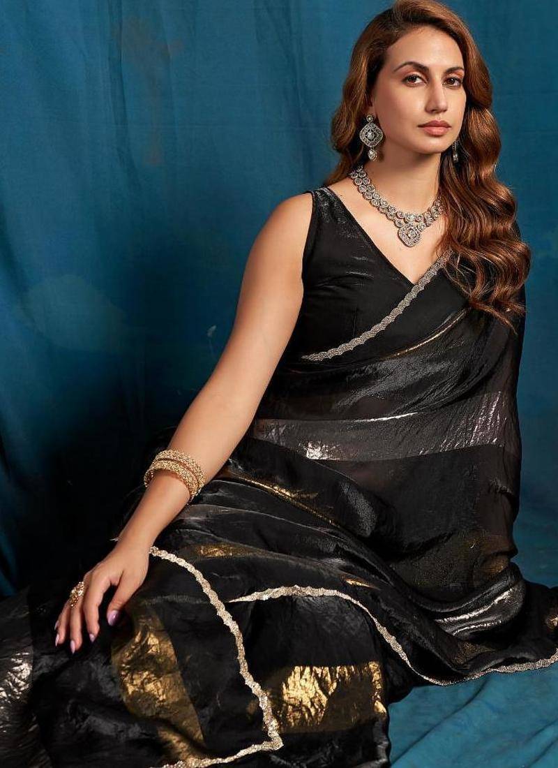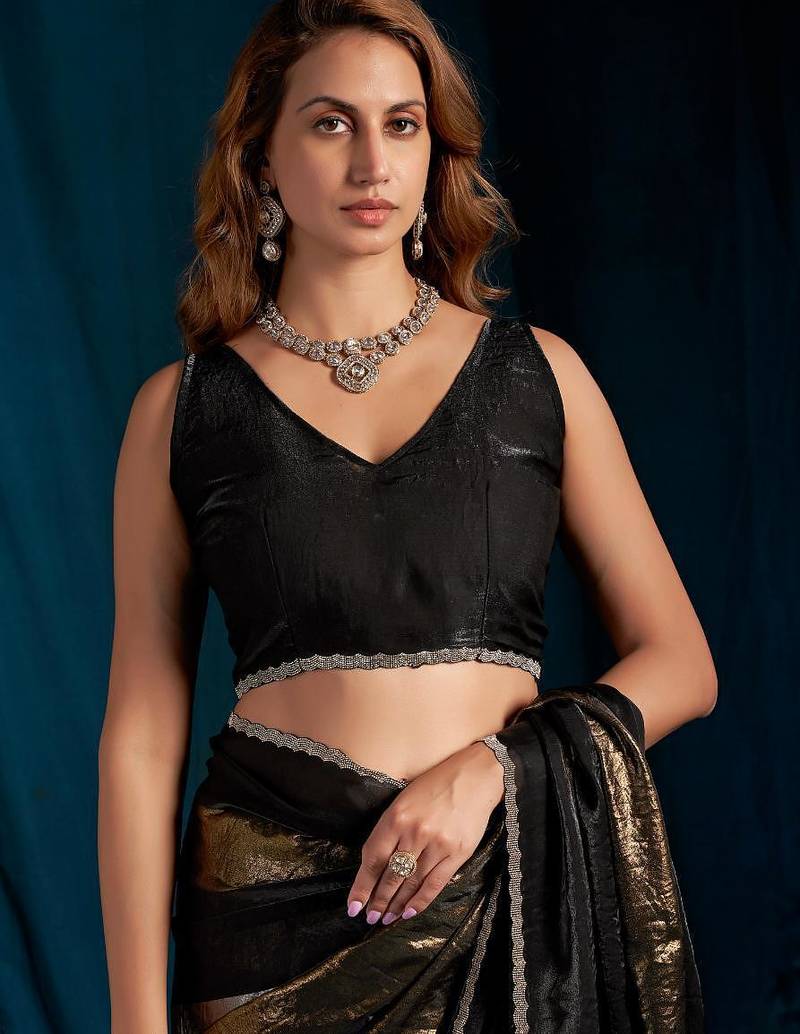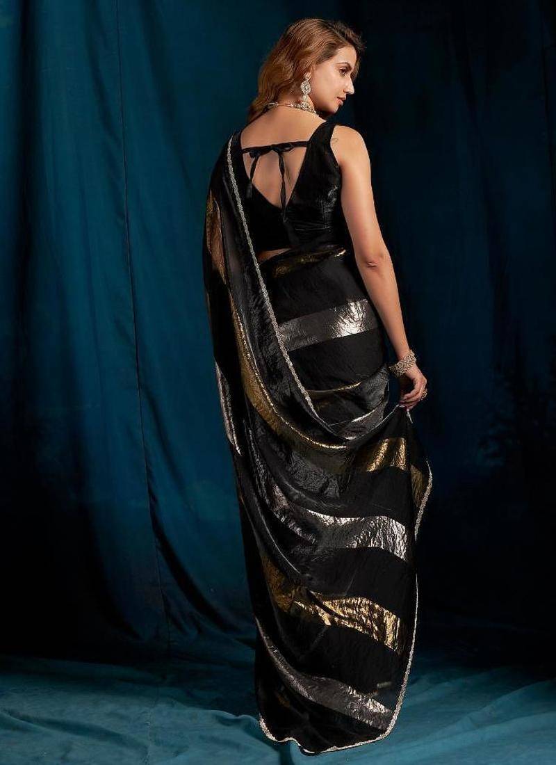 | Product Name | Black Color Satin Silk With Foil Patta & Zircon Handwork Border Saree | |