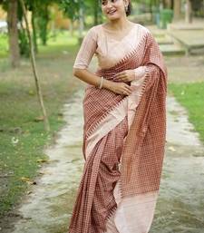 Coffee color tussar silk checks printed style kanth weaving saree