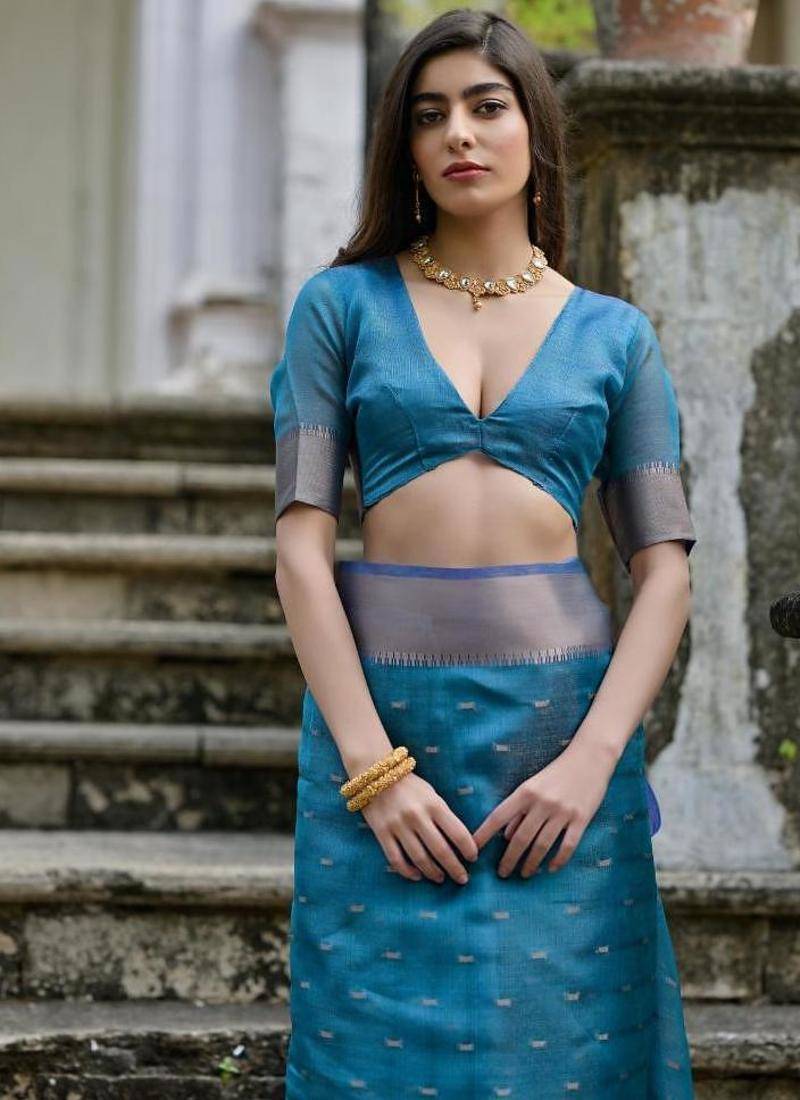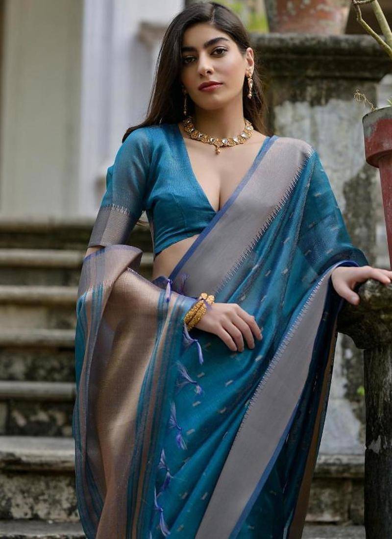 | • | Saree | : | Color- Sky Blue / Fabric- Silk Blend |