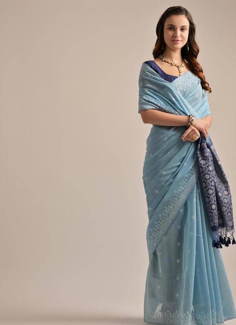 | • | Saree | : | Color- Sky Blue / Fabric- Cotton |