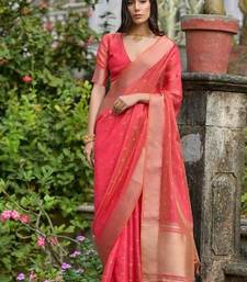 Gajri pink color kalyani silk zari weaving butti & border saree