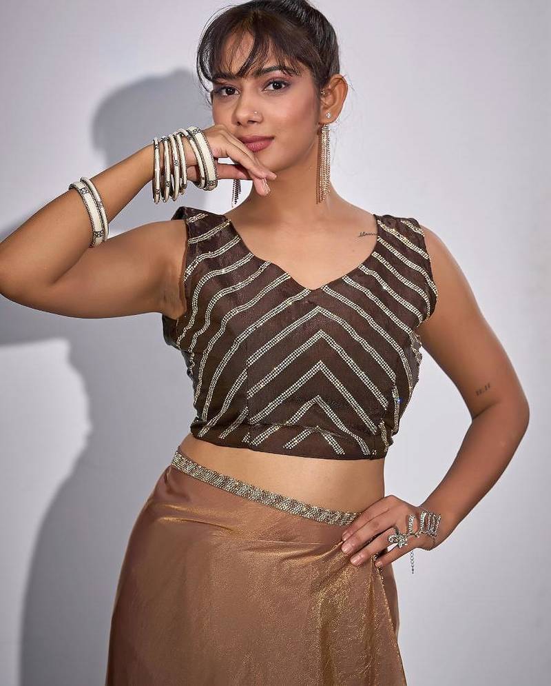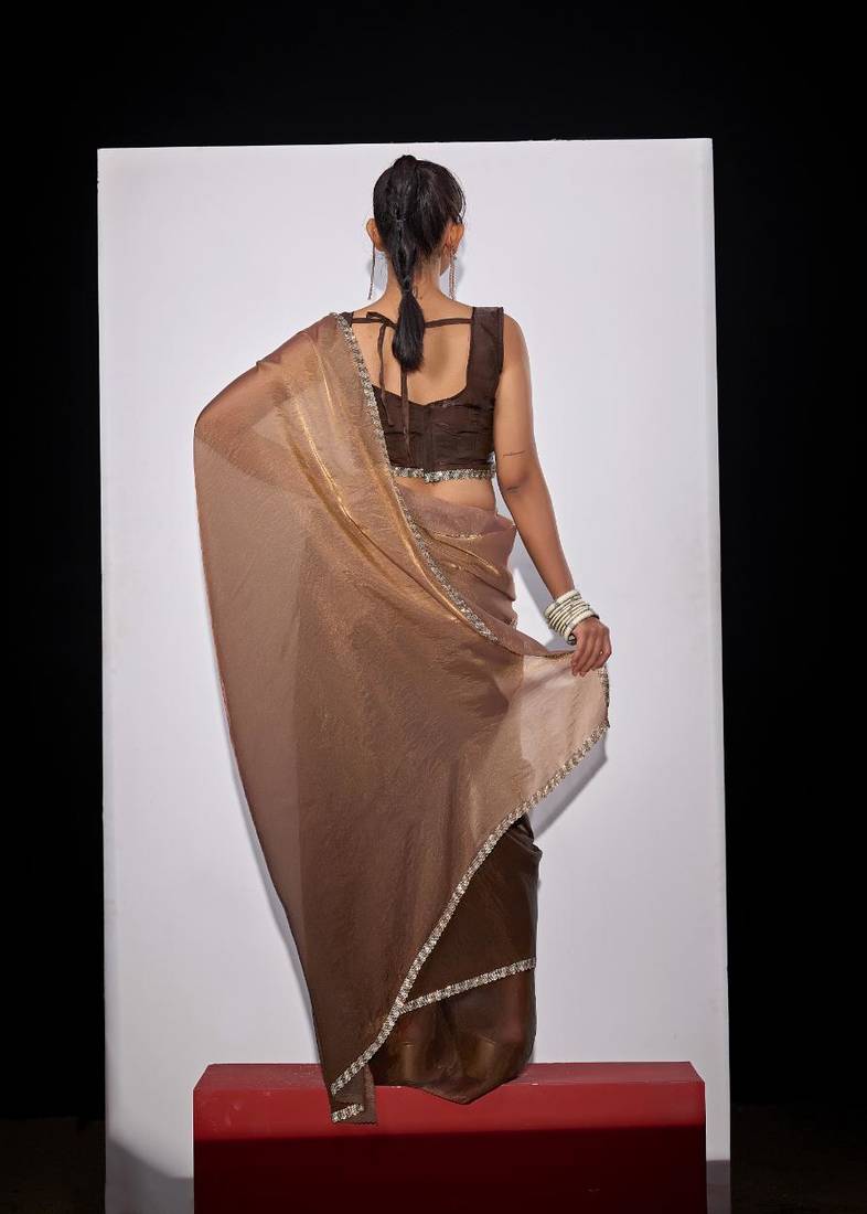 | Product Name | Gold & Brown Color Fendi Satin Silk Peding Zircon Handwork Saree | |