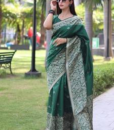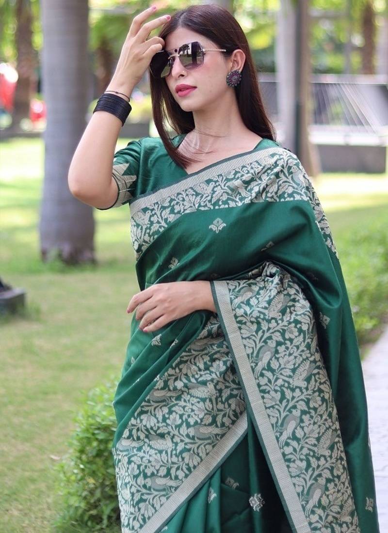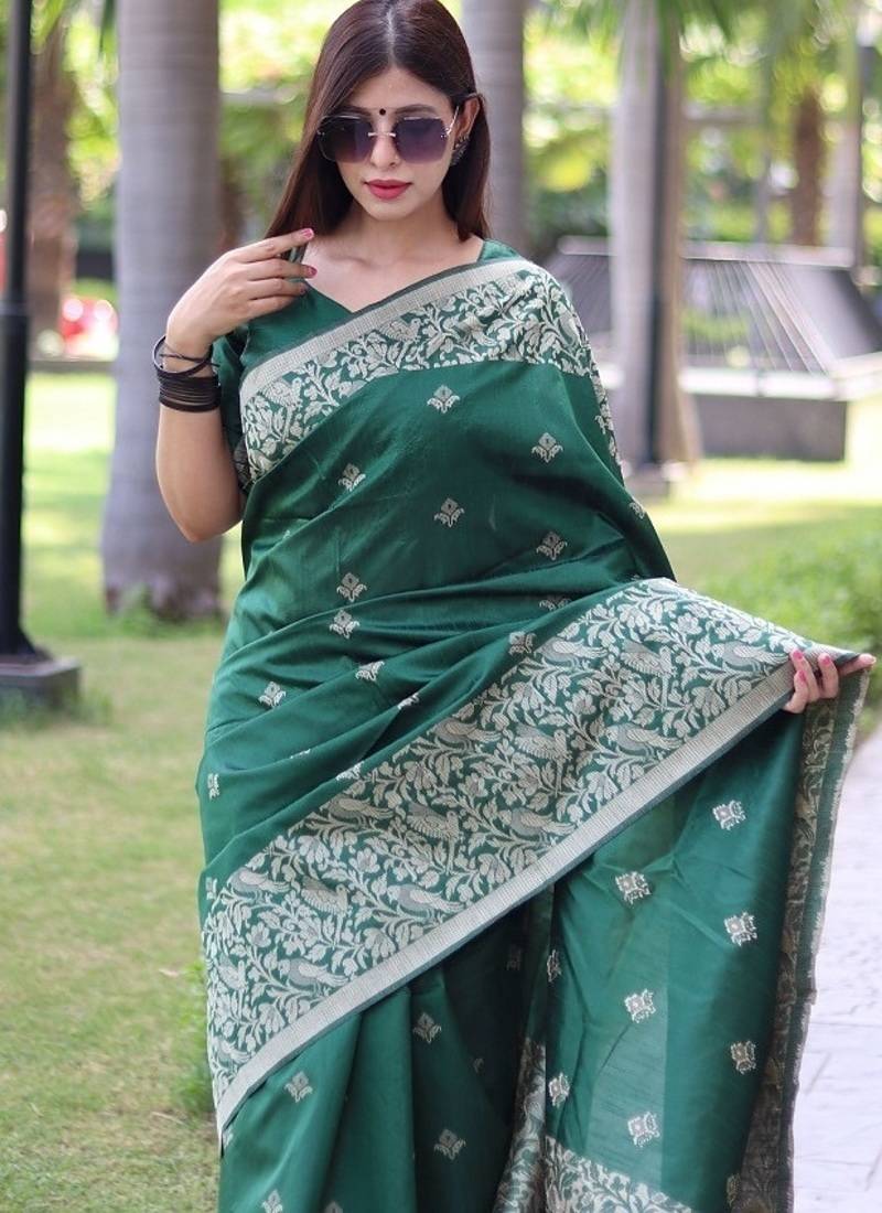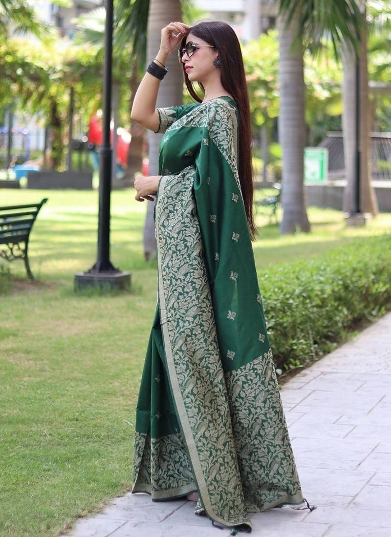 Green color banglori handloom raw silk waving buttis saree