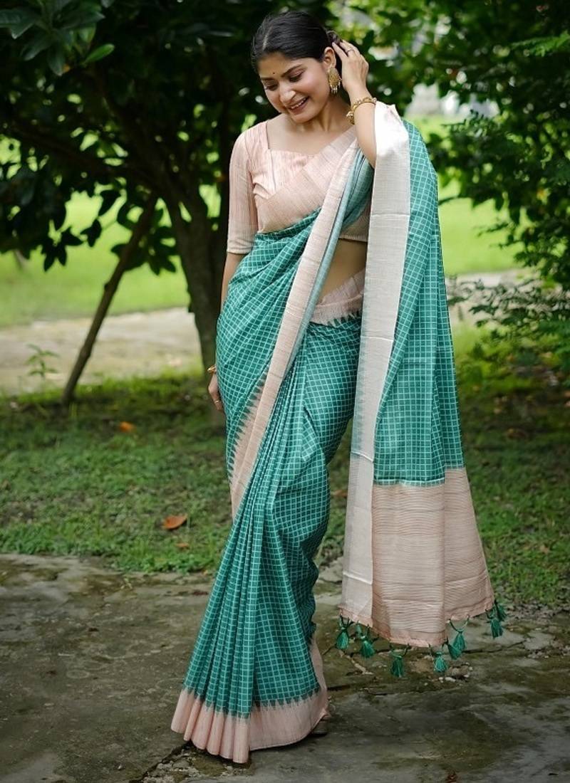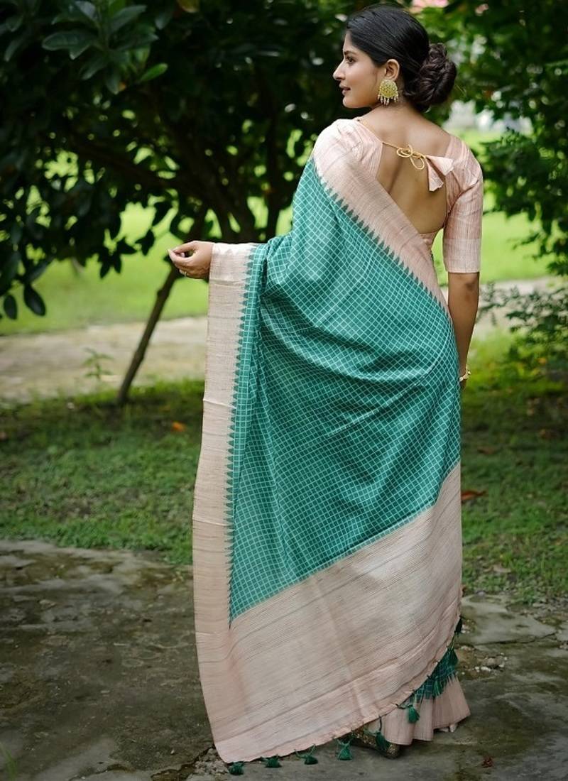 | Product Name | Green Color Tussar Silk Checks Printed Style Kanth Weaving Saree | |
