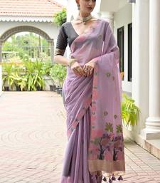 Levender color chanderi cotton resham weaving party wear saree