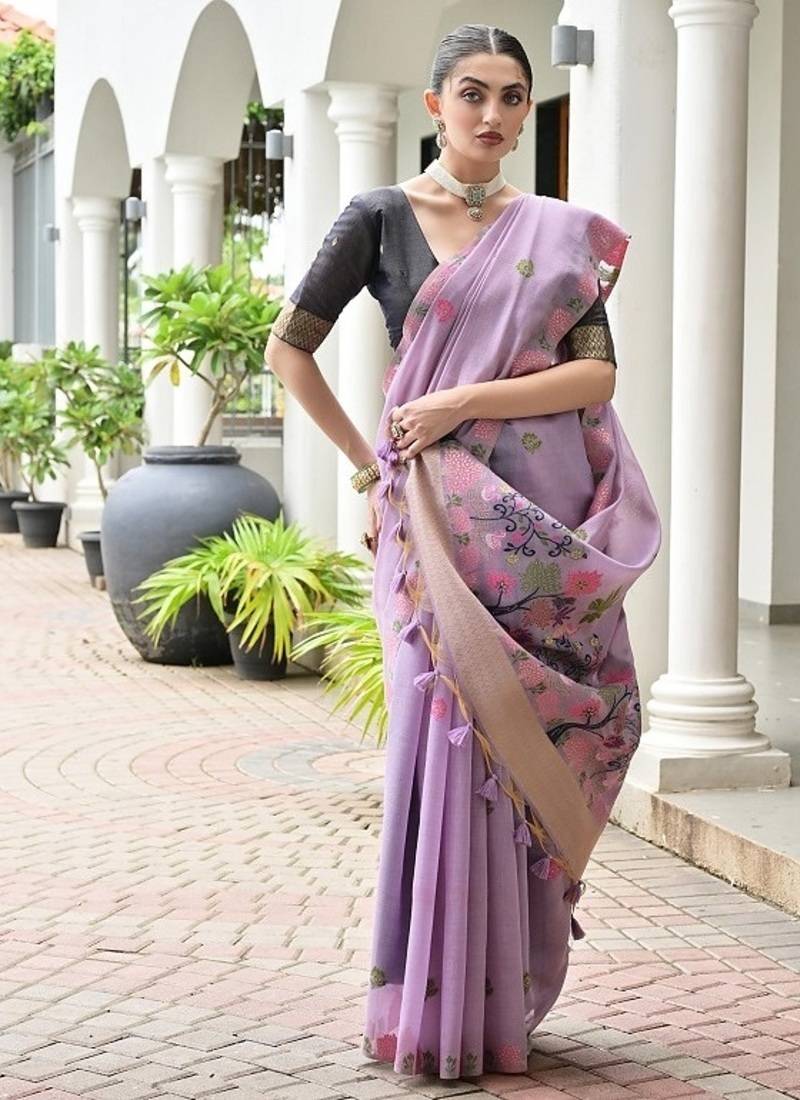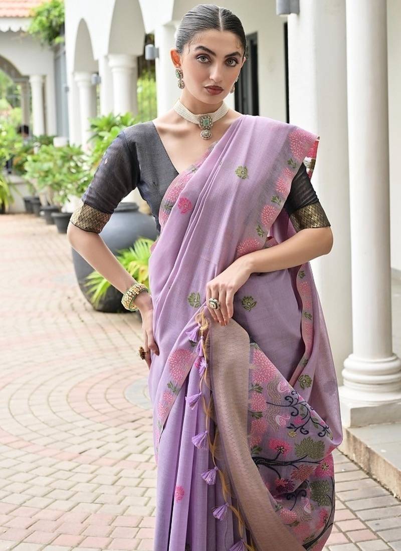 Product Name Levender Color Chanderi Cotton Resham Weaving Party Wear Saree
